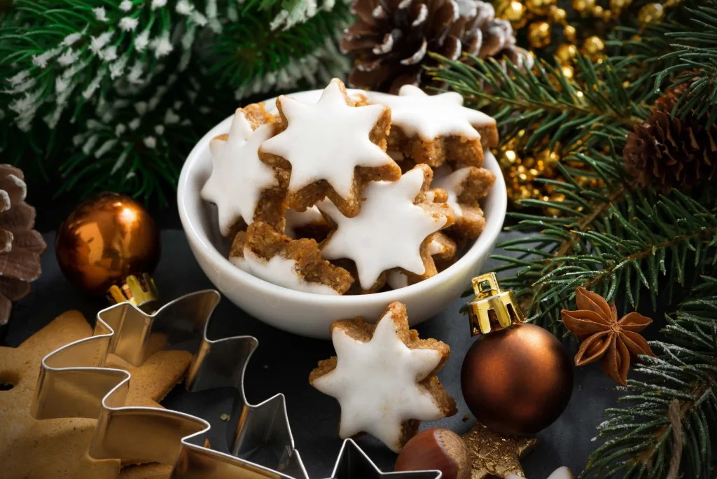 After enjoying the warm, comforting flavors of Nutmeg Sugar Cookies, I’m excited to make Festive Cinnamon Stars. I’ll grind hazelnuts, beat egg whites, and mix in powdered sugar and ground cinnamon. Chilling the dough is crucial, then I’ll roll it out and cut star shapes. These cookies are a classic holiday treat that symbolize the warmth and joy of the season. After baking at 275°F, I’ll frost them with the leftover egg whites for a delightful finish.