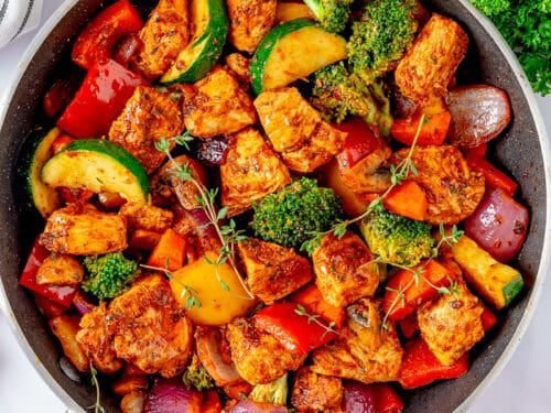 It’s packed with protein and veggies! I sauté chicken with a mix of soy sauce and hoisin, then toss in colorful bell peppers, broccoli, and crunchy cashews. The dish features sweet and spicy flavors that elevate the overall taste experience.
