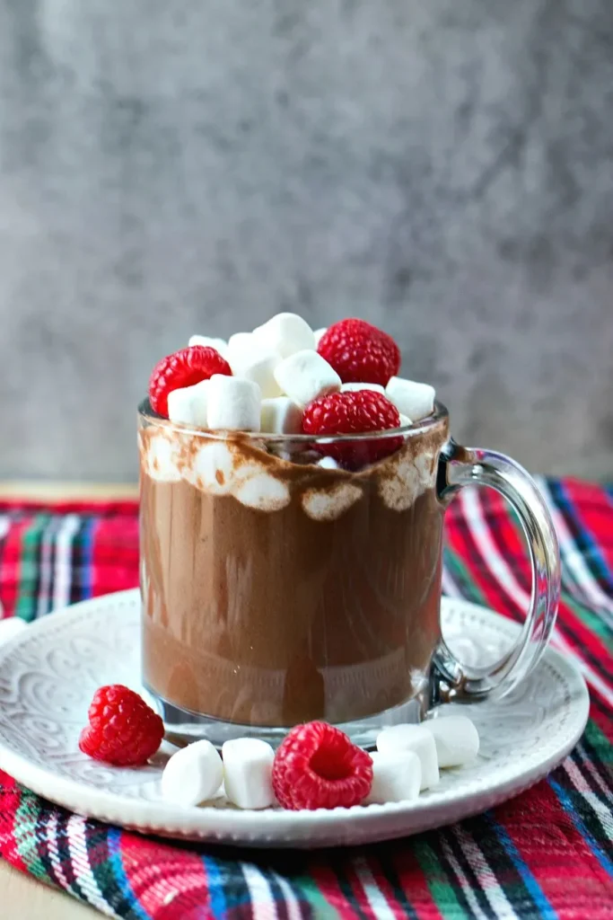 Rich and velvety, Creamy Raspberry Hot Chocolate is a delightful treat that combines the comforting warmth of hot chocolate with the vibrant flavor of fresh raspberries. I simmer raspberries with water to make a syrup, then mix it with steamed milk, cream, cocoa, and dark chocolate. To enhance the flavor, I sweeten the syrup with sugar before adding it to the hot chocolate mixture. It’s a luscious drink, garnished with whipped cream, perfect for cozy nights. Enjoy every sip!