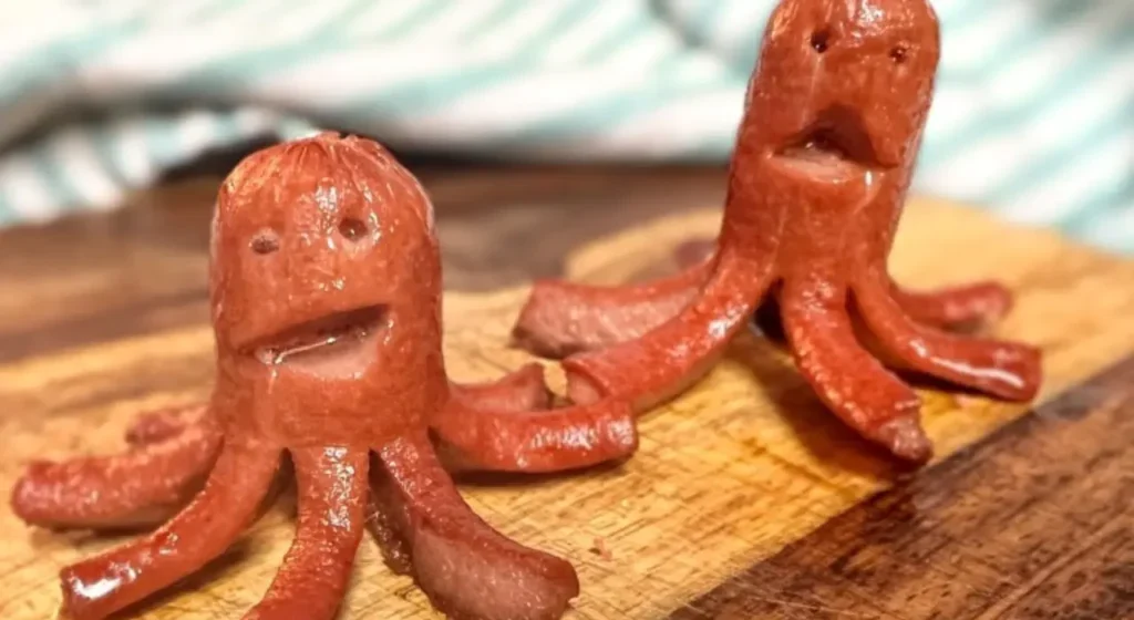 After enjoying the fun of mini corn dogs, it’s time to get creative with hot dogs in a whole new way—by making hot dog octopuses! Just slice the hot dog to form tentacles, then air fry or pan fry them until they curl. Use mustard or sesame seeds for eyes. Choose firm hot dogs for better shape retention. They’re not only cute but perfect for parties or school lunches!