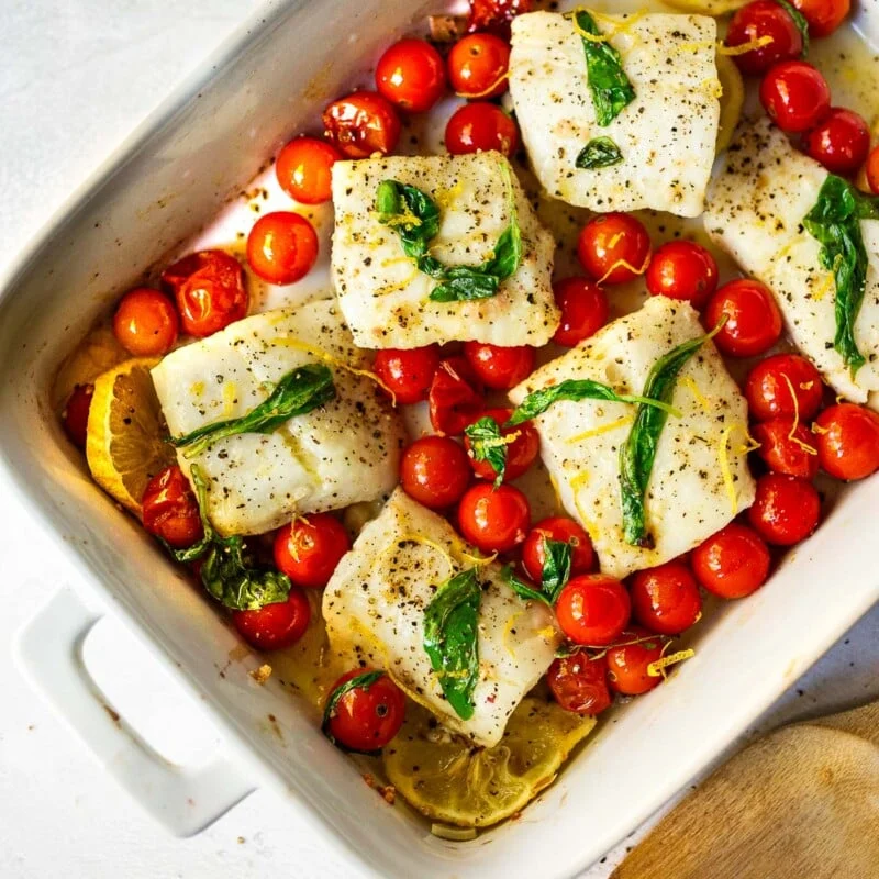 Sautéing onions until they’re golden brown creates a flavorful base for this Tomato-Roasted Cod with Spiced Almonds. I nestle the cod filets into a rich tomato sauce made with fire-roasted tomatoes, garlic, and spices. Topped with crunchy, spiced almonds, it’s a delightful dish that combines sweet and savory flavors to appeal to diverse palates. A squeeze of fresh lemon juice elevates the flavor, making it perfect for a romantic dinner. Enjoy!