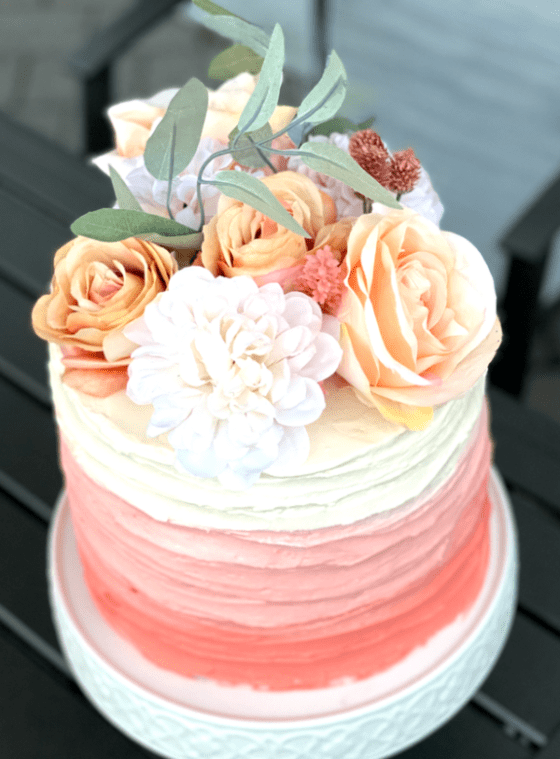 Although I love the simplicity of minimalist cakes, adding an ombre color effect can elevate them to a whole new level. I start by baking layered cakes in my favorite recipe, then stack them with buttercream. I use 3 to 4 shades of the same color, piping from dark to light, and blend with an offset spatula for a stunning, smooth finish. Cake decorating techniques such as these can help achieve a beautiful and professional-looking ombre effect.