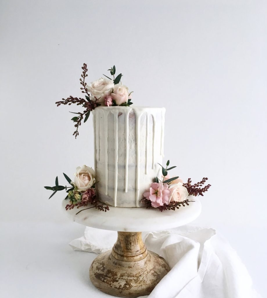 Fresh floral accents can transform a minimalist birthday cake into a masterpiece of natural beauty.