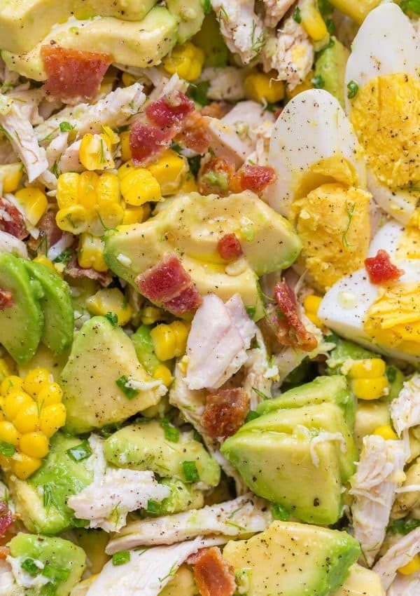 While planning a summer picnic, I often turn to avocado chicken salad for a refreshing and satisfying option. I combine shredded chicken, diced avocado, corn, and minced onion in a bowl. For added flavor, I mix in herbs or optional ingredients like bacon or grapes. This dish is popular for birthdays and special occasions, making it a crowd-pleaser. Toss it all together and serve it on croissants or just enjoy it as is. It’s delicious!