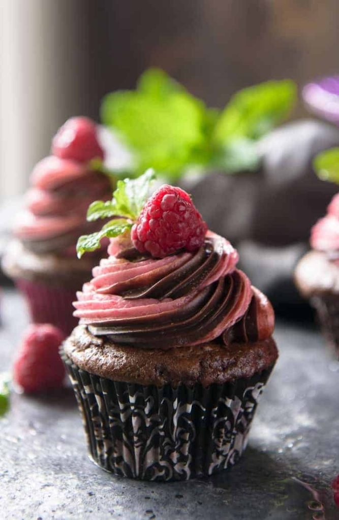 6. Dark Chocolate Raspberry Buttercream Cupcakes