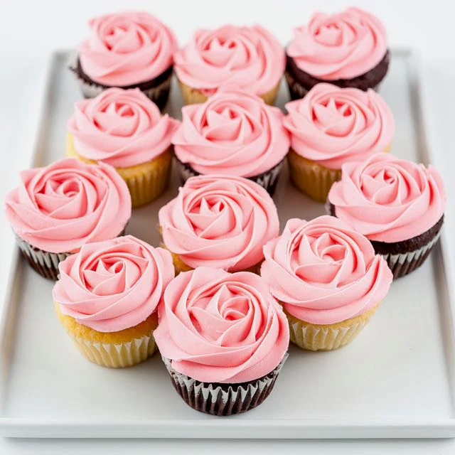 Just mix the ingredients, bake at 350 degrees for 15-17 minutes, and decorate with buttercream icing and edible rose petals for an elegant finish.