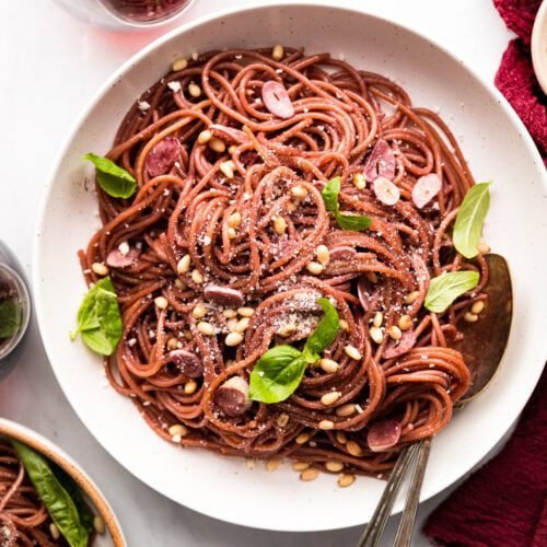 Red wine pasta sauce brings a rich depth of flavor to any dish, making it a perfect accompaniment for a romantic Valentine’s Day dinner. I start by sautéing onions and garlic in olive oil, then add red wine, reducing it to intensify the taste. Additionally, using high-quality olive oil enhances the overall flavor profile of the sauce. After simmering crushed tomatoes and herbs, I adjust the consistency with pasta water for a deliciously satisfying sauce. Enjoy!