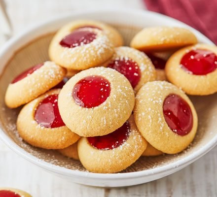 Thumbprint cookies are one of my favorite treats to bake for Valentine’s Day.